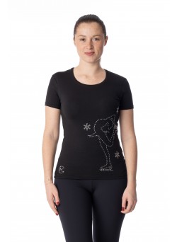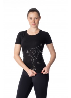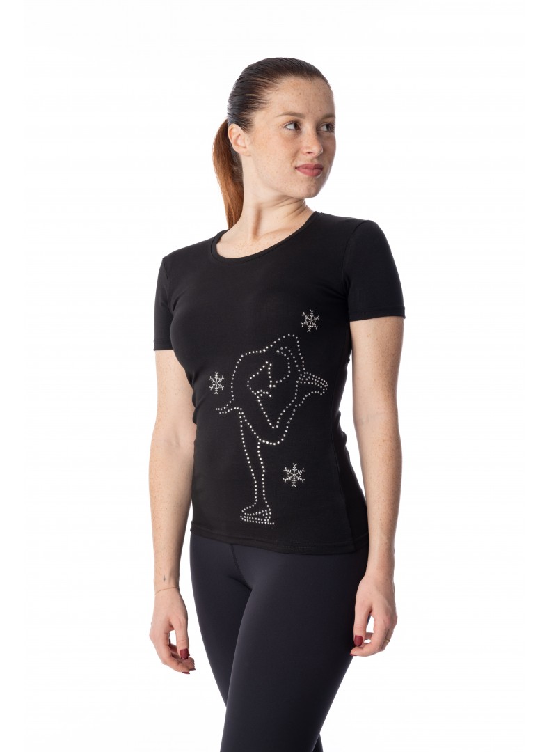 T-shirt cotone elastico con stampa pattinatrice strass.